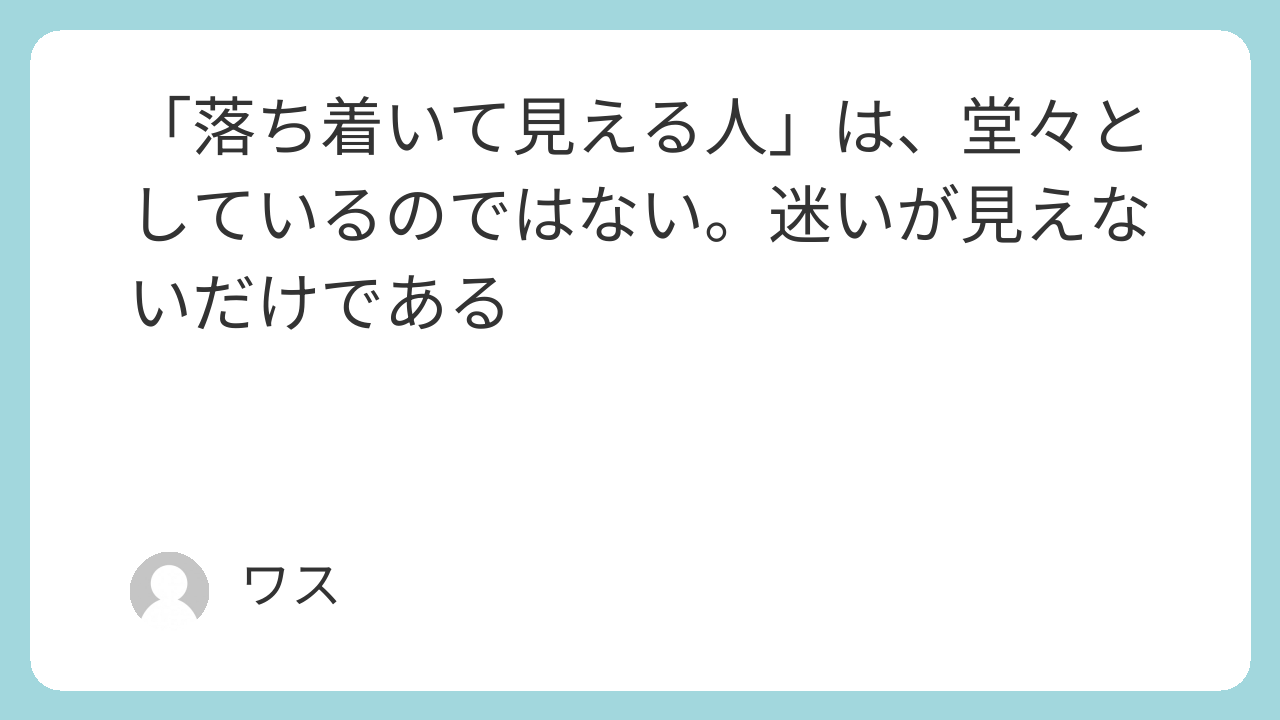落ち着いて見える/見えないは、だいたい迷いが外に漏れているかどうかで決まる。
