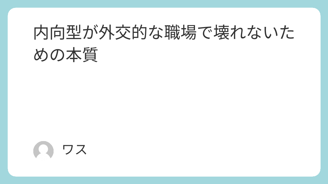内向型が外交的な職場で壊れないための柱は3つ。